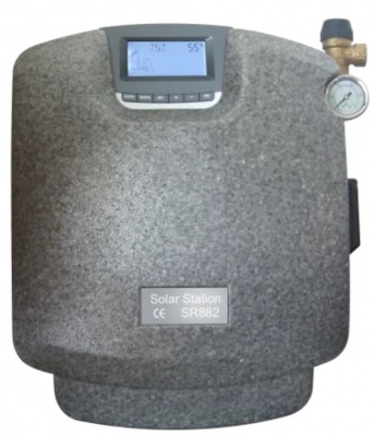 Насосная станция SR 882 используется в солнечной водонагревательной сплит-системе с принудительной циркуляцией (такая система используется если бак-аккумулятор находится ниже коллекторов) и предназначена для регулирования циркуляции теплоносителя в коллекторном контуре (бак-коллекторы-бак).